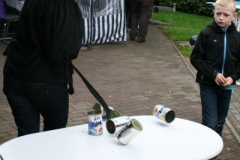 Nachdem die „Herzluschen“ (Dieter, Günther, Silke und Karl- Heinz) beim letzten Sommerfest den Gesamtsieg bei der Fahrradrallye holten, stand fest: Das Sommerfest 2011 wird in Kleinwiehe gefeiert. Als Termin guckten wir uns den 13.August aus. Sogar Petrus hatte ein Einsehen – es blieb zumindest trocken, meistens jedenfalls. Unser „Präsi“ Dieter eröffnete das Fest mit ein paar netten Worten zur Begrüßung und sorgte für die Teambildung. Das Motto der diesjährigen Spiele lautete: „ Die perfekte Minute“ – oder so ähnlich. Als da waren: a) Regenschirme auf eine Teppichstange werfen, b) Einen Tischtennisball per Schuhlöffel in das Loch des Rückendeckels eines Aktenordners legen, c) mit einem Tennisball im Damenstrumpf, der an der Hüfte des Spielers gebunden war, Dosen von einem Tisch abräumen, d) Würfelzucker auf einem Lineal aufstapeln und zu guter letzt: e) Pfeilwerfen. Spaß und Komik kamen dabei nicht zu kurz – die Beweisfotos sind ja dabei…..