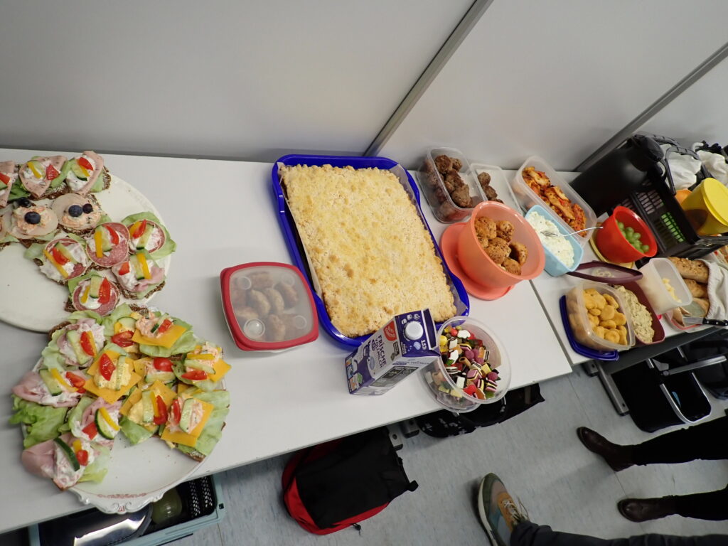 Auch für die Verpflegung war bestens gesorgt: Wie so oft bei unseren gemeinsamen Veranstaltungen entstand durch die mitgebrachten Speisen der Teilnehmenden ein reichhaltiges Buffet mit zahlreichen Leckereien. Von herzhaften Snacks bis zu süßen Kleinigkeiten war alles vertreten, sodass in den Pausen für jeden Geschmack etwas dabei war. Eines war dabei sicher – Hunger musste an diesem Seminartag niemand leiden.
